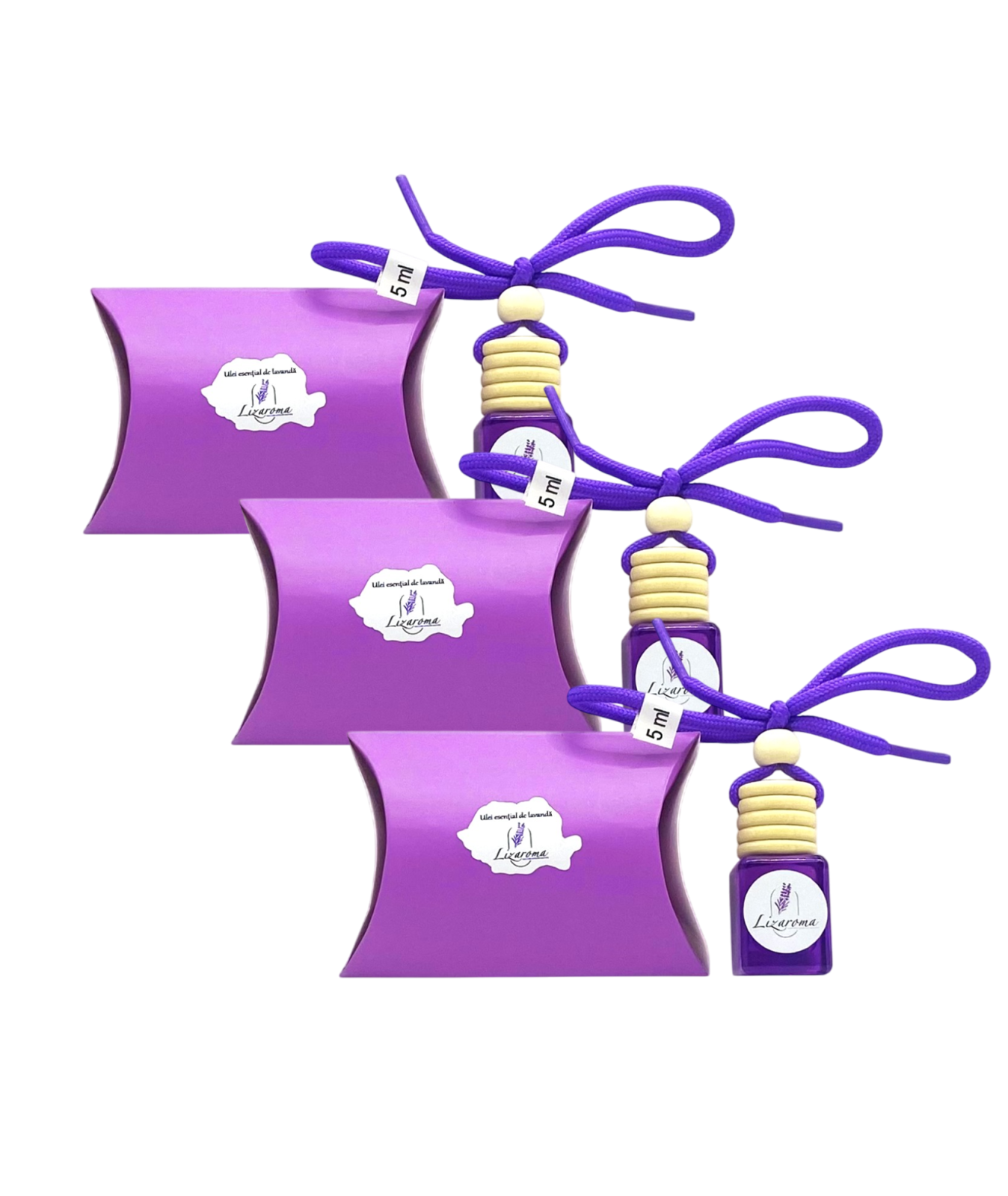 Dacă îți dorești ca tu şi cei dragi să respiraţi aer parfumat fără chimicale, acest produs este excelent în autoturism, în camere de mici dimensiuni sau garderobe, Uleiul esențial pur de lavandă îmbunătățețte starea de spirit și alungă stresul, având efect calmant și relaxant. De asemenea, curăță și, în același timp, neutralizează mirosurile neplăcute. Capacul este din lemn de esență moale ce permite difuzarea aromei în interiorul autoturismului sau al camerei. Sticluțele au un dop din plastic ce asigură etanșeitatea conținutului acesteia, înainte de utilizare