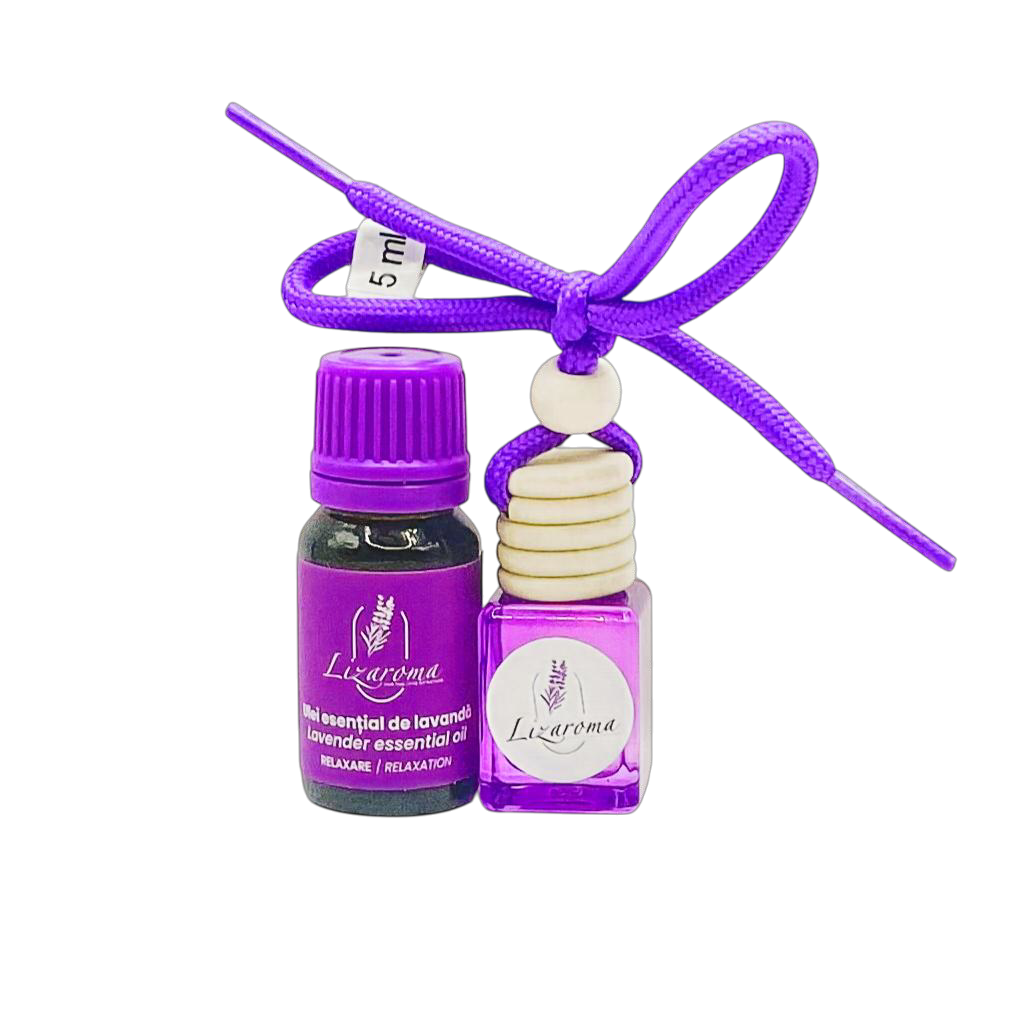 Dacă îți dorești să respiri aer parfumat fără chimicale, acest produs este excelent în autoturism, în camere de mici dimensiuni sau garderobe, Uleiul esențial pur de lavandă îmbunătățețte starea de spirit și alungă stresul, având efect calmant și relaxant. De asemenea, curăță și, în același timp, neutralizează mirosurile neplăcute. Capacul este din lemn de esență moale ce permite difuzarea aromei în interiorul autoturismului sau al camerei. Sticluțele au un dop din plastic ce asigură etanșeitatea conținutului acesteia, înainte de utilizare.