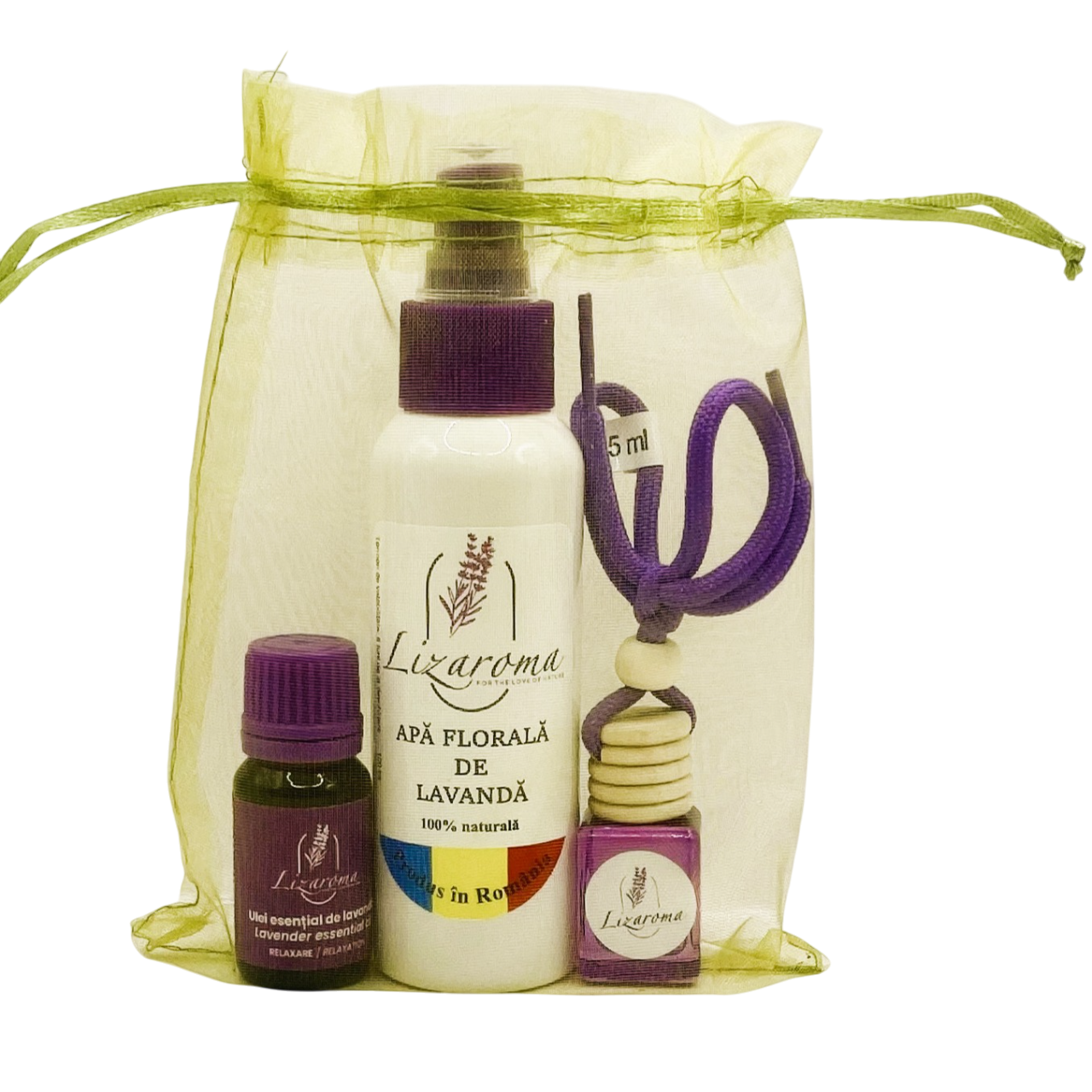 Ingrediente: Apă distilată microbiologic pură, molecule de ulei esențial 100% pur și natural de lavandă (maxim 2-3%),